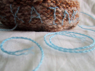 (Yes, that's a miniature knitted nest you spy. Don't tell me you weren't expecting it?)... Covering one of the wooden suitcases I bought cheap years ago (can't find the original post but the stickers on the bottom for the biscuits say they expired in April 2007)